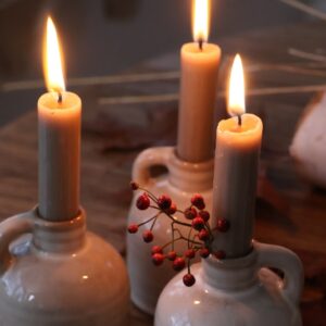 zu den Stumpenkerzen: Stumpenkerze taupe – 5 Größen, Stumpenkerze weiß – 3 Größen