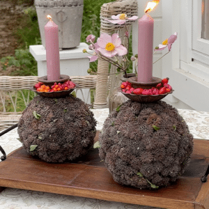 Teller als Deko am Tisch mit Teelichter, Vasen etc….