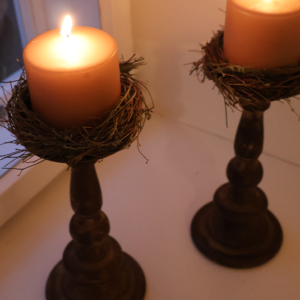 - 2x Kerzenspieß braun für dünne Stabkerze inkl. Stabkerze leinen