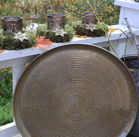 - Wahlweise inklusive Teller silber/gold (dm = 59 cm)