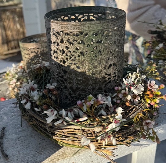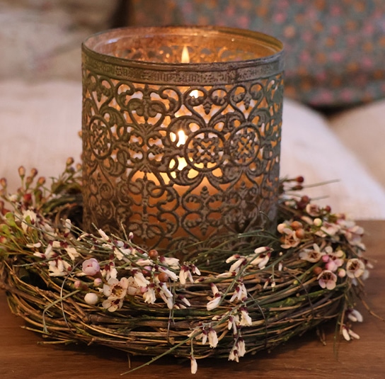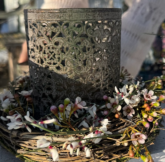 DIY Set – Windlicht Nuri mit Kranz grün/braun