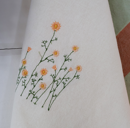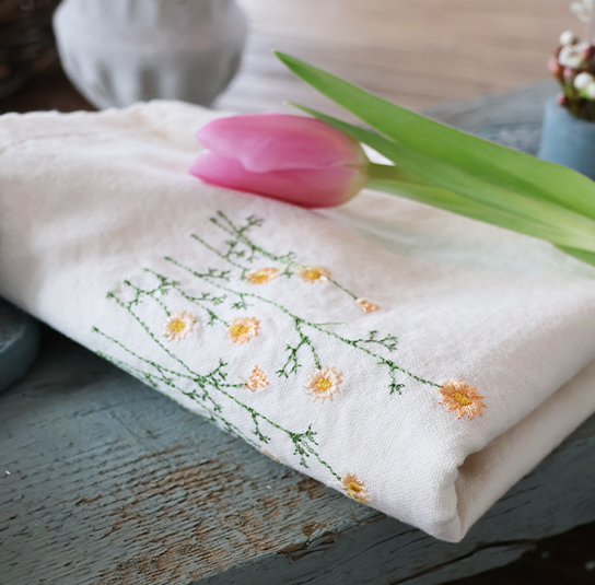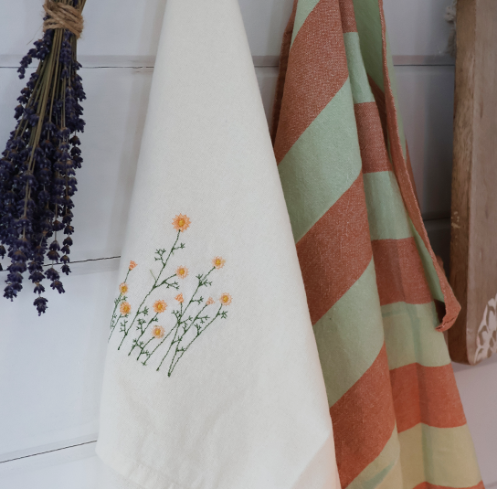 Geschirrtuch Flora natur mit bestickten Blumen gelb