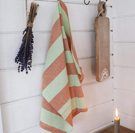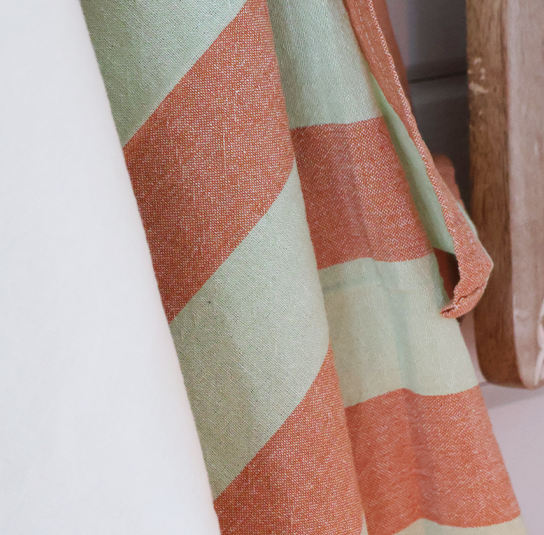 Geschirrtuch Linus mint, orange gestreift