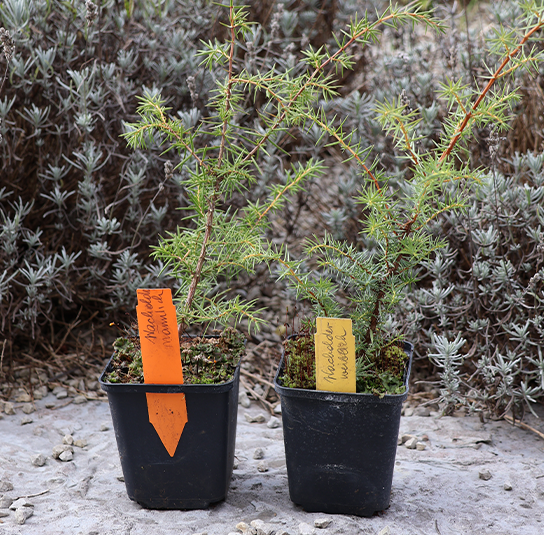 Gechlechtsbestimmung: Bei kleineren, jungen Pflanzen kann das Geschlecht leider noch nicht ermittelt werden, dazu muss der Wacholder zumindest schon einmal geblüht haben, was er allerdings erfahrungsgemäß erst nach einigen Jahren macht. Dann immerhin gibt die Blüte Auskunft über das Geschlecht. Die Geschlechterverteilung bei samengezogenen Pflanzen ist etwa 50%50. Als Möglichkeit zur Ergänzung des „fehlenden“ Geschlechtes könnten in einer Baumschule in der Nähe eine größere Pflanze, die bereits blüht oder Beeren trägt ausgesucht werden, sofern erhältlich. Gerne auch bei uns diesbezüglich nachfragen. Langfristig arbeiten wir intensiv daran, Wacholder auch nach Geschlecht getrennt anbieten zu können – genau wie beim Sanddorn. Diese Pflanzen werden über Steckholz vermehrt und so hat das Steckholz einwandfrei das Geschlecht der Mutterpflanze.
