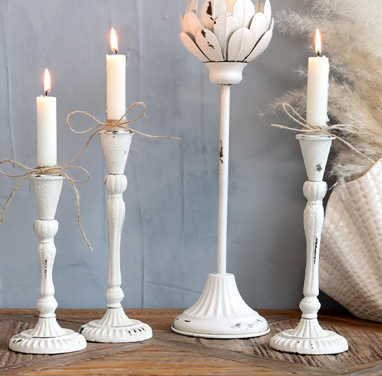 Kerzenständer Ramona creme/weiß in 2 Größen für Stabkerzen