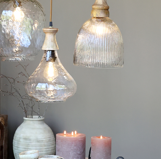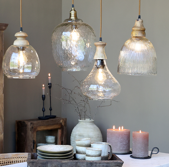 Lampe Glas mit Holz