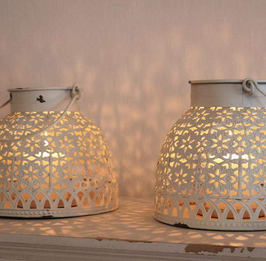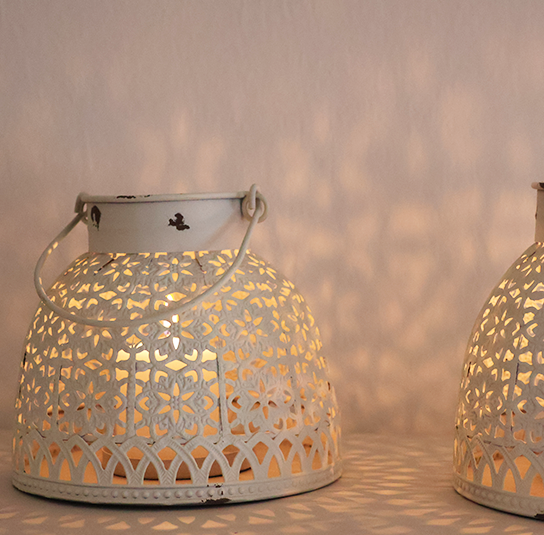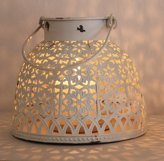 Laterne oder Windlicht antique creme mit Henkel aus Eisen