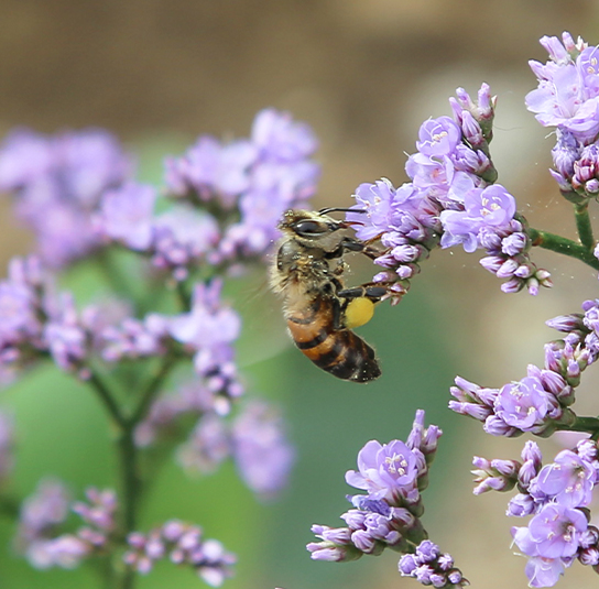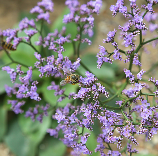 Obwohl die Einzelblüten sehr klein sind, ist der Meerlavendel eine hervorragende Bienenweide. kein Wunder, denn es wird reichlich Nektar abgegeben. Die lila Blütenwölkchen werden daher stark von Honig- und Wildbienen, Hummeln, Schwebfliegen und anderen Insekten besucht. Auch Schmetterlinge nutzen die Blüten zur Nektaraufnahme.