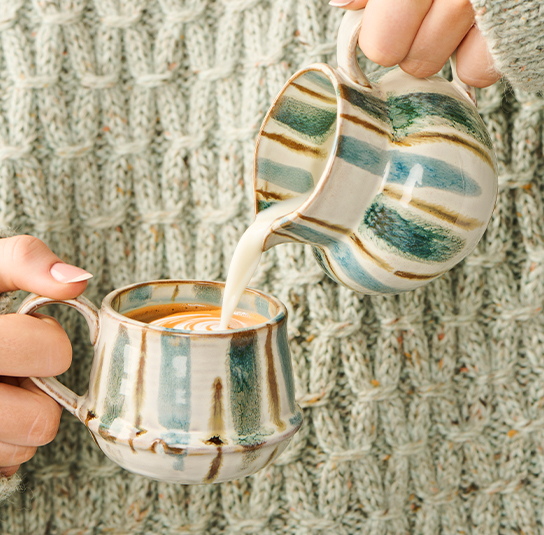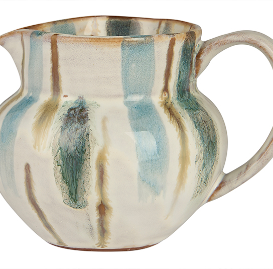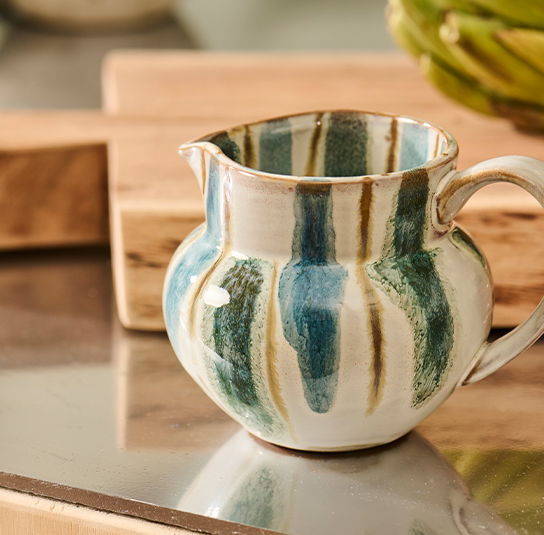 Milchkanne mit Henkel blau/grün gestreift