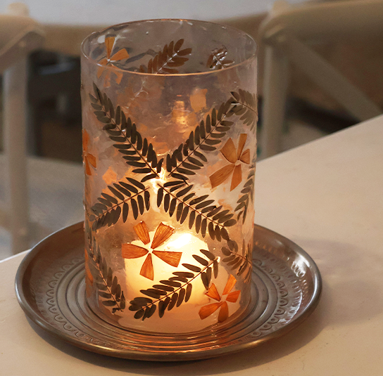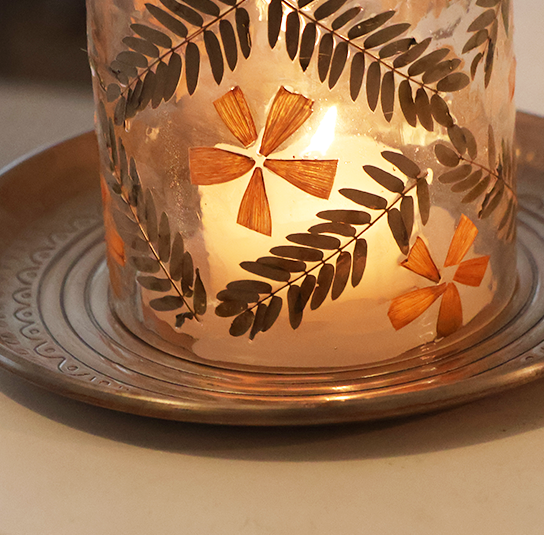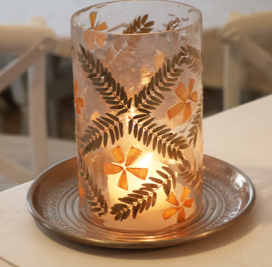 Set Windlicht Herbstaub & Teller Hortensie gold (dm = 21 cm)