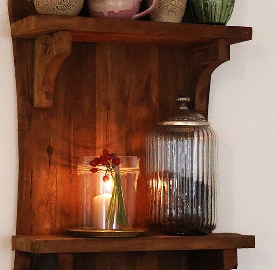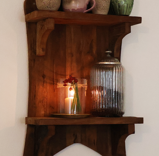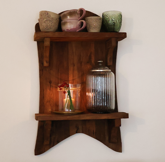 Holzregal Grimaud mit 2 Ablageflächen zur Wandmontage