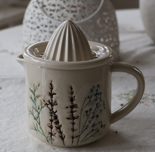 Becher, Häferl mit Henkel Bea bauchig aus Steingut mit Blumenmotiv