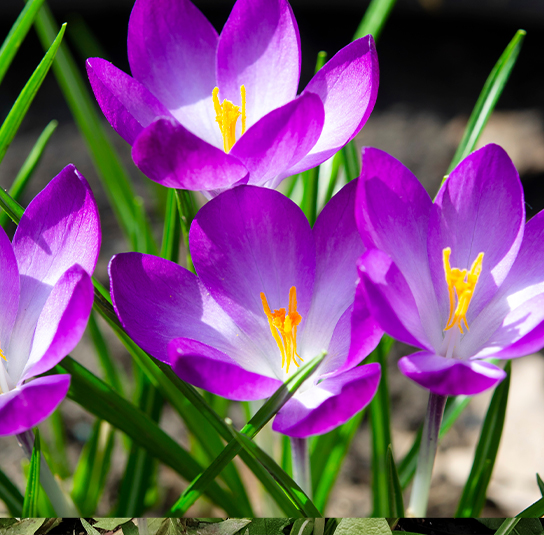 Krokusse müssen ihr Laub vollständig einziehen dürfen, bevor sie z.B. in Rasenflächen abgemäht werden. Ansonsten gibt es im Folgejahr nur Laub und keine Blüten. Die frühe Blütezeit machen Krokusse gerade für kurzer gehaltene Wiesen- oder Rasenflächen ideal.